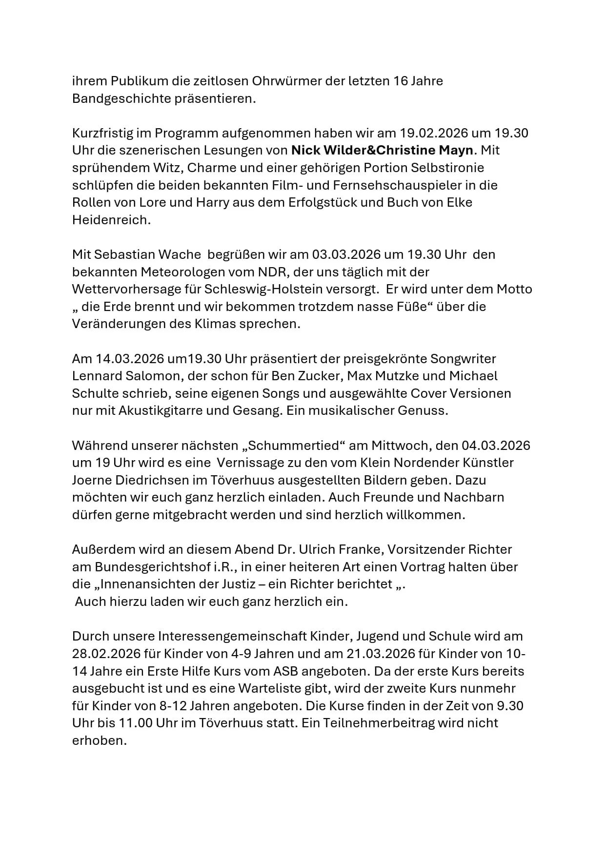 Newsletter 02/2026 18. Feb. Verfasst von Holger Burmeister Liebe Mitglieder,anbei unser aktueller Newsletter zur Info. Über Euren Besuch würden wir uns sehr freuen.Liebe GrüßeEuer Vorstand Holger Burmeister